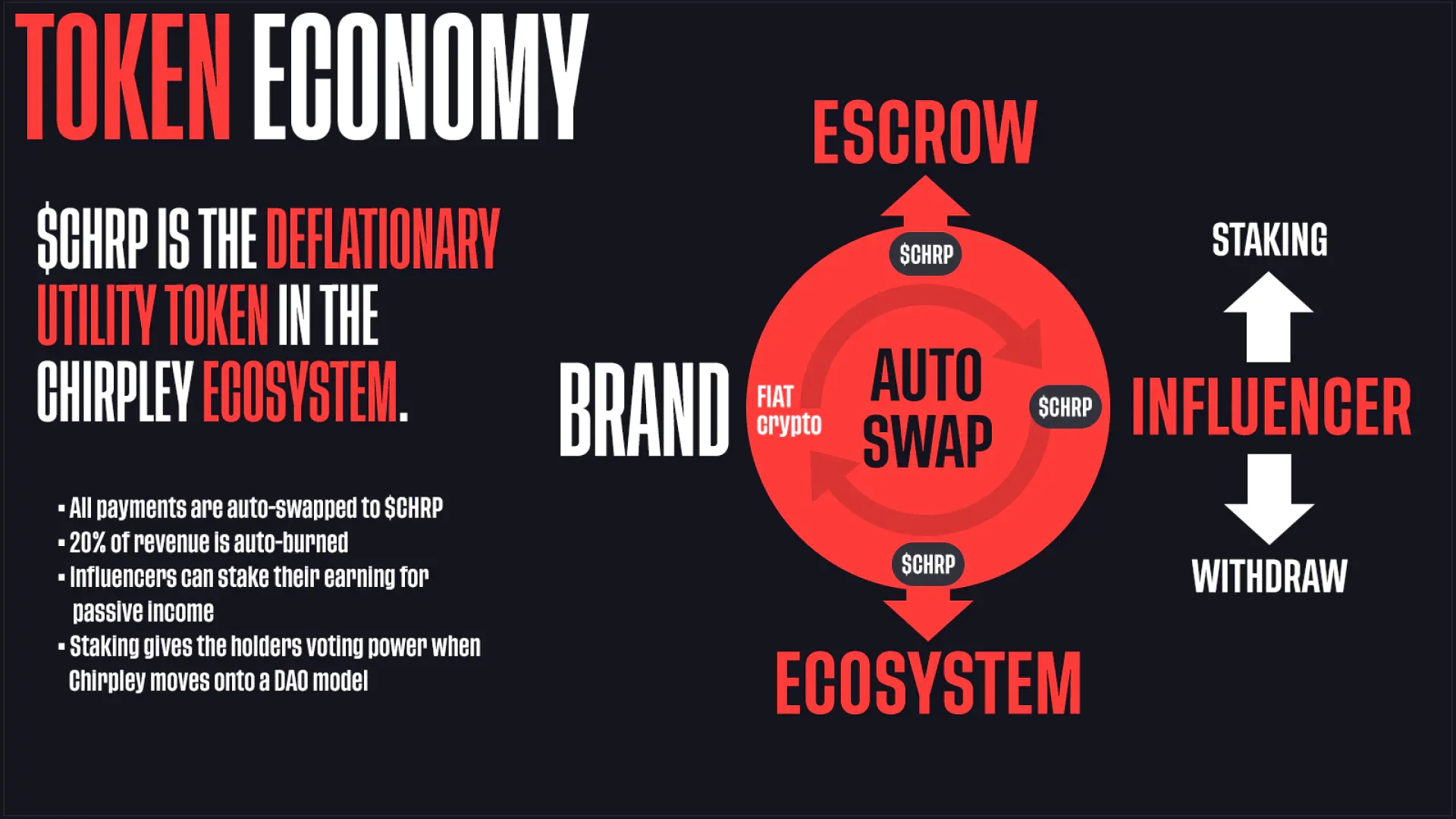 Brands pays a handling fee of 10% taken from their chosen budget (50% discount on payments done in Chirpley Token).
